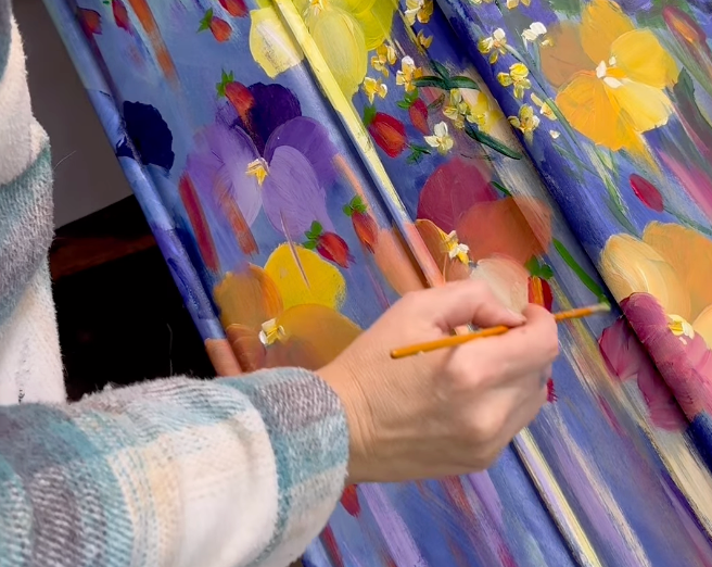 Malovaná s vědomím, že bolest nelze zcela utišit, ale že krása, barvy a světlo mohou pomoci nést tmu.